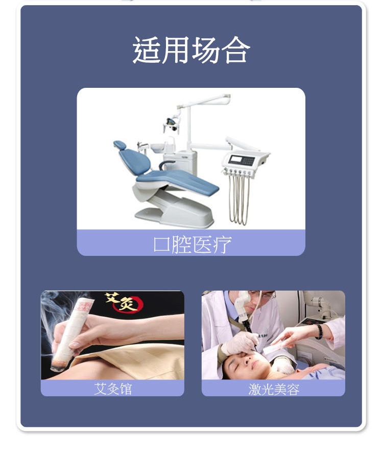 主要應(yīng)用:醫(yī)療美容、艾灸、口腔氣霧、實(shí)驗(yàn)室等煙塵凈化