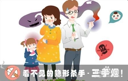 二手煙煙霧就是吸煙時看的見的那些煙霧。旁邊有人抽煙,我們就會被動吸煙。二手煙的成分同直接吸煙幾乎沒有差異,加上二手煙在空氣中存在的時間遠遠超過吸煙者本身所用吸食所用的時間,所以吸二手煙對身體的危害比吸煙者更大。 三手煙比“二手煙”更加隱蔽,它是指香煙煙霧殘留在我們經常接觸到的衣服、墻壁、地毯、家具甚至頭發和皮膚等表面的物質,其中包含了氫氰酸、丁烷、甲苯、砷、鉛、一氧化碳以及十一種高度致癌的化合物,這些殘留物可存在幾天、幾周甚至數月。