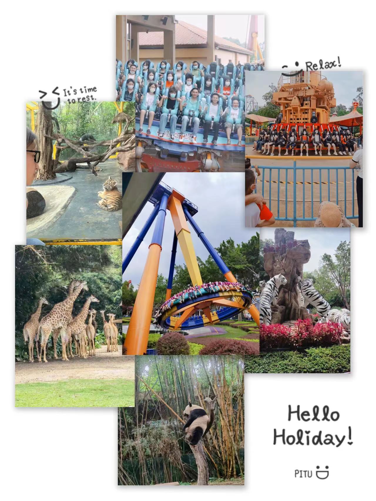 雖然天氣炎熱,但是絲毫擋不住人的熱情。在長隆歡樂世界六大主題區:叢林探險、律動天地、歡樂嘉年華、星夢奇園、感動空間、尖叫地帶、兩大演藝廣場+劇場表演區域,隨處可見人盡情體驗項目的身影,下午出發長隆野生動物園,和動物近距離接觸,感受大自然的無限奧妙及魅力,大家三五成群地結伴而行,激情洋溢,喜出望外,體驗過程中不忘留影打卡,記錄旅行中的點點滴滴。